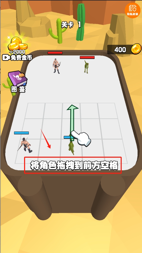 1、将角色拖拽到前方空格,帮助角色移动到合适的位置以进行攻击、防御。