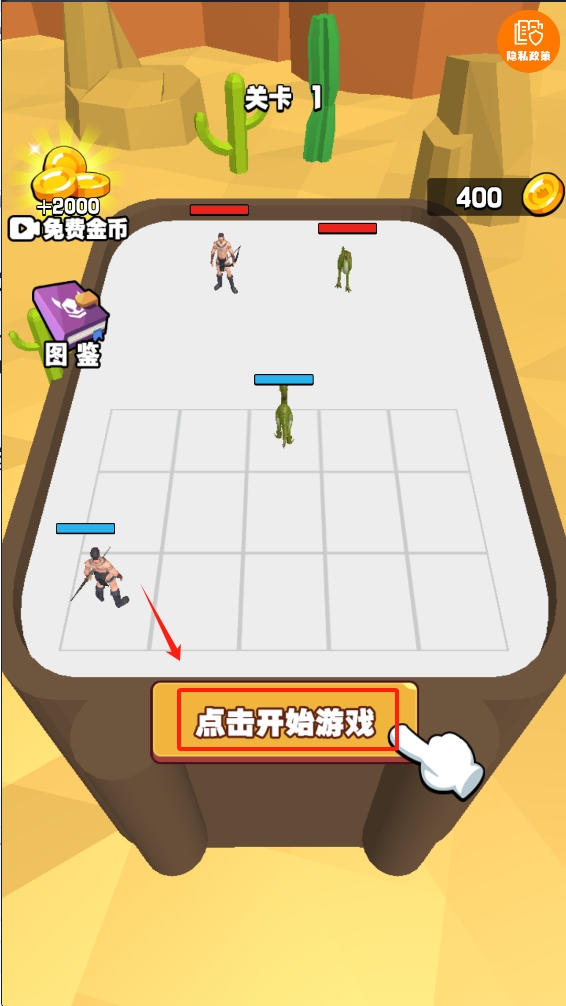 2、点击开始游戏按钮,让你进入战斗场景,开始你的冒险之旅。