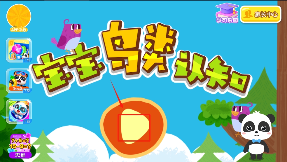 1、点击主界面上的播放按钮,进入“宝宝鸟类认知”游戏。