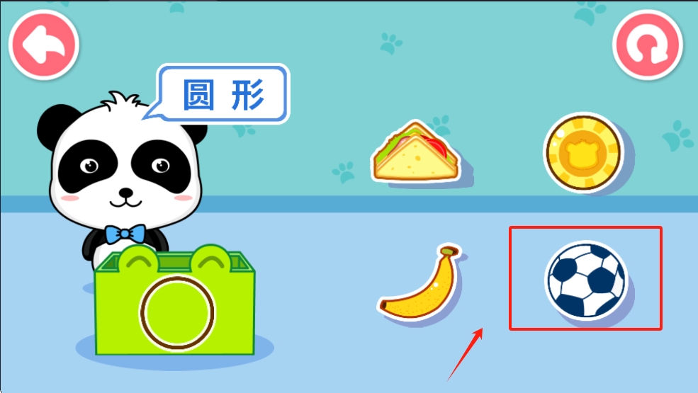 3、点击“足球”“奖牌”放进箱子内,确保每个形状都被正确分类,学习形状知识。