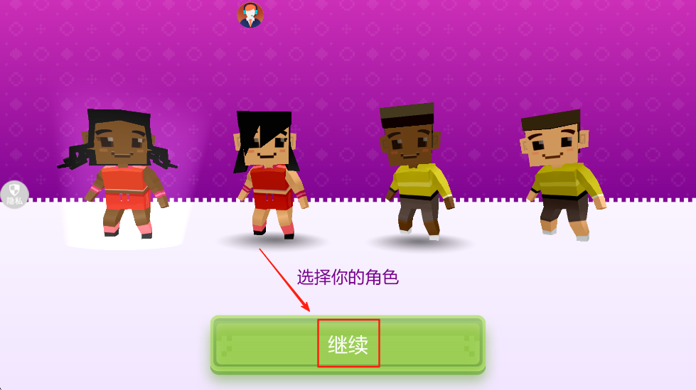 2、选择你的角色,点击“继续”按钮,开始你的游戏旅程。