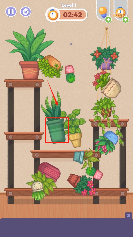 2、拖动花盆至目标位置,完成关卡任务即可获得游戏奖励。