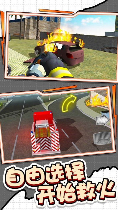 1. 玩家扮演消防车司机和消防员,在城市中进行各种消防救援任务;