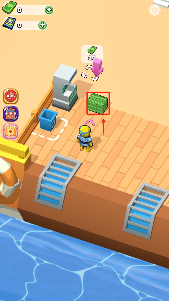 1、点击绿色方块,获取金币奖励,这是经营水上乐园的基础资金来源。