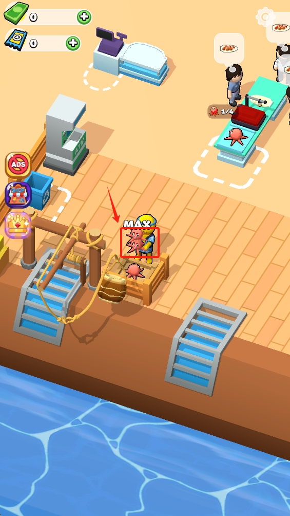 3、点击“MAX”章鱼图标,制作章鱼小丸子,进行售卖,增加收入。