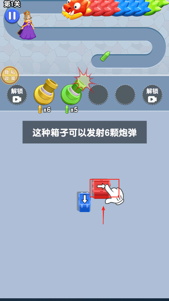 拯救小公主在精心设计的关卡里,解锁散落的弹药箱,观察它们的位置。顺着箭头提示规划路线,努力为炮塔持续输送弹药。累积足够火力才能突破阻碍,最终击败守护巨龙,救出公主。每个关卡都藏着独特挑战点,找出它们至关重要。顺利通关后,你将面对更新颖、更具难度的关卡布局,持续带来新鲜考验。