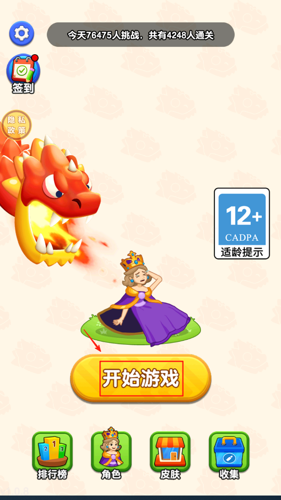1、点击主界面的“开始游戏”按钮,进入游戏,开始你的冒险之旅。