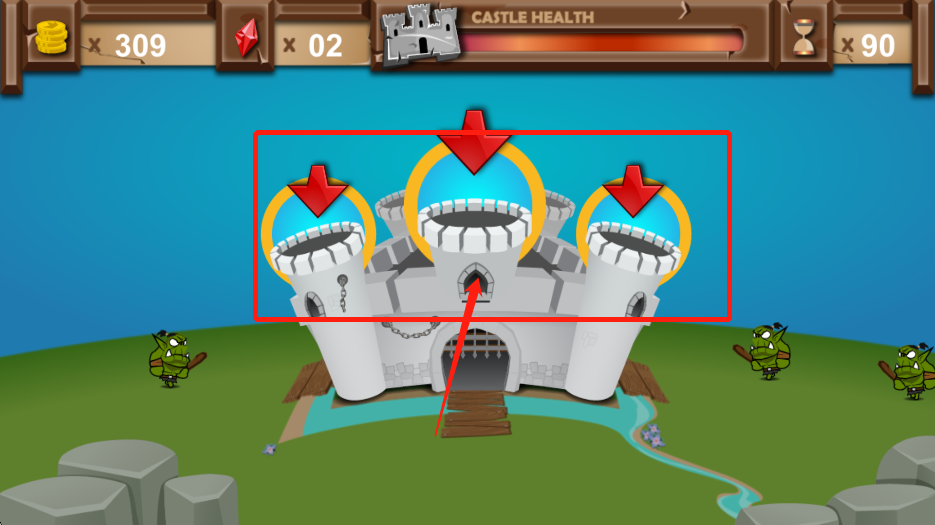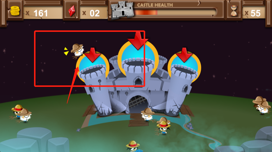 2、当怪兽来临时,点击城堡的上方召唤士兵。