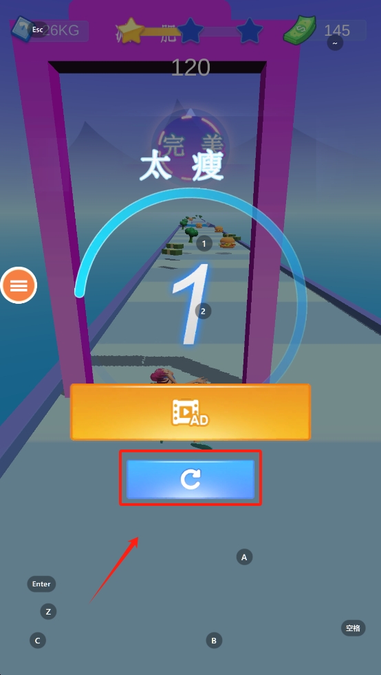 3、若角色不慎掉入坑中,点击屏幕下方的蓝色重新开始按钮,可重新挑战当前关卡。