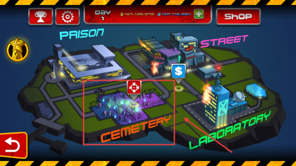 2、点击【CEMETERY】进入墓地,与僵尸展开决斗。