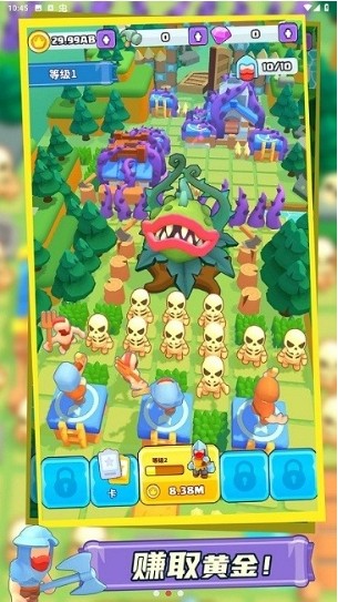 4、空闲时赚取黄金,合并你的士兵,释放被占领的村庄和城市。