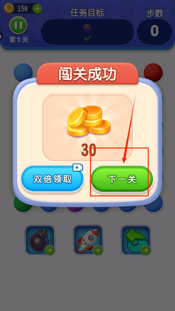 2、把相同颜色的球连在一起消除。