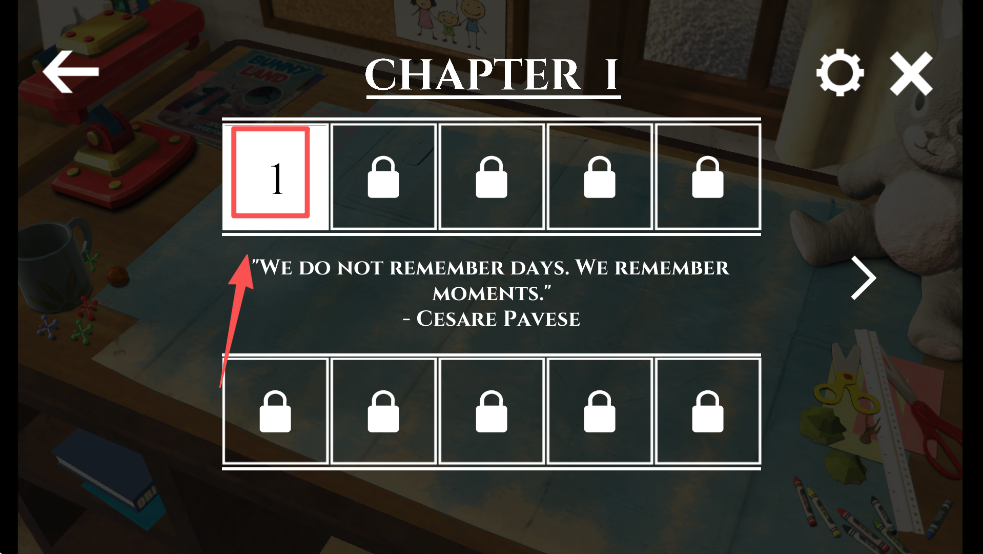 2、接着,选择章节1开始游戏,点击解锁的章节进入。