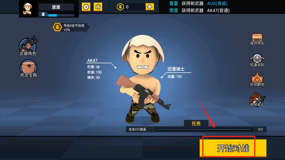 1、在角色界面,点击“开始对战”按钮,进入战斗模式,开始游戏。