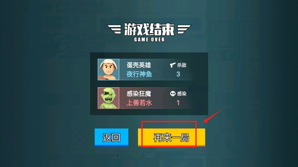 3、游戏结束后,点击“再来一局”继续挑战,或选择“返回”退出游戏。