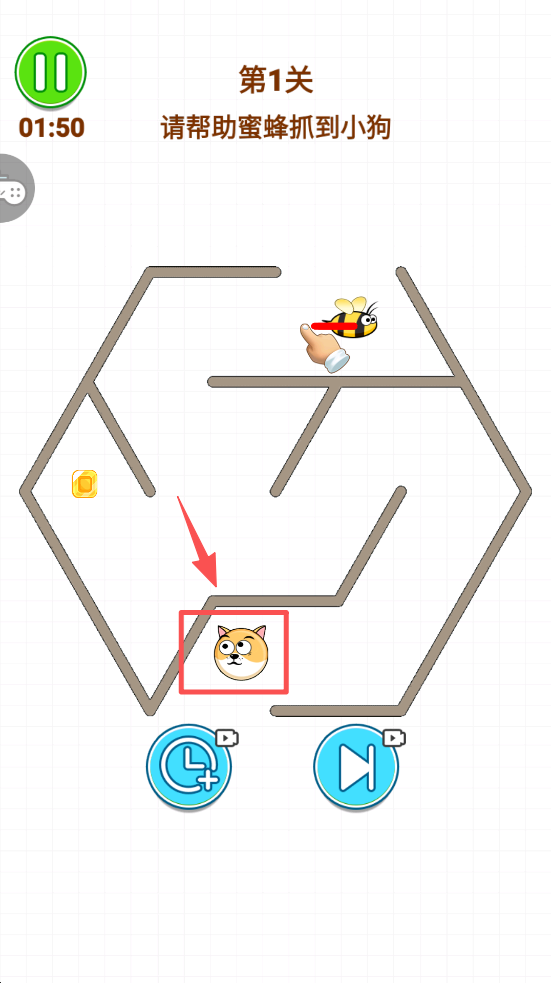 4、选择关卡后,按照提示帮助蜜蜂抓到小狗即可通关。