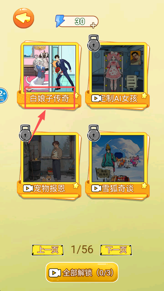 2、在关卡选择界面,点击“白娘子传奇”关卡,开始你的挑战。