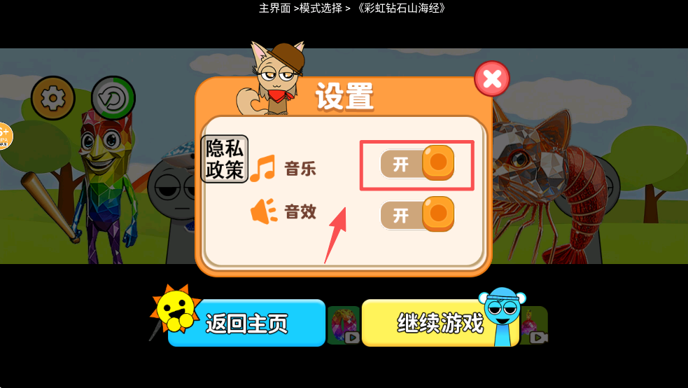4、设置完成后,点击“继续游戏”按钮,进入游戏开始你的音乐之旅。