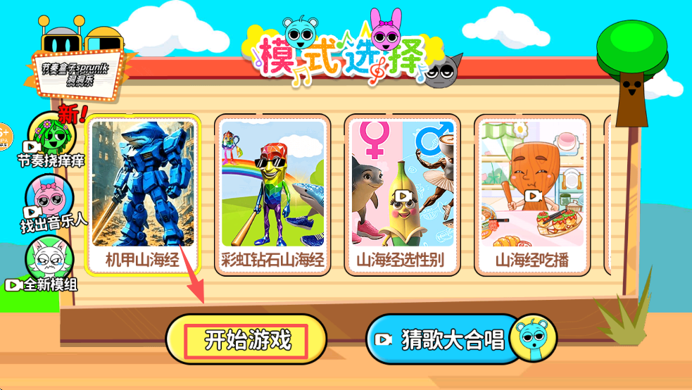 1、在主界面选择一个你喜欢的游戏模式,如“机甲山海经”。