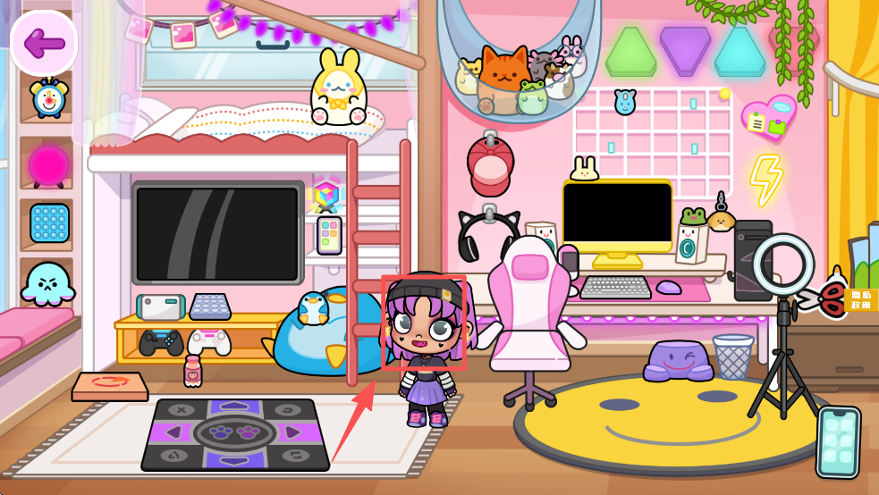 2、选择一个角色,点击箭头指向的DJ设备,开始你的装扮之旅。