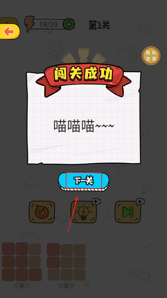 4、完成关卡后,点击“下一关”按钮,继续挑战更高难度的关卡。