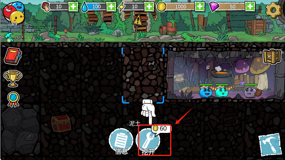 2、在挖掘界面,点击 “挖开” 按钮,开始挖掘资源。