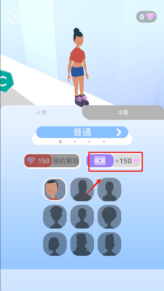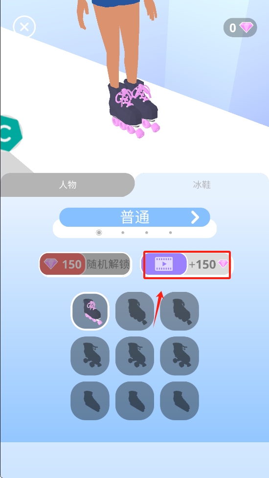 3、通过观看视频广告获取额外的钻石,解锁更多角色和冰鞋。