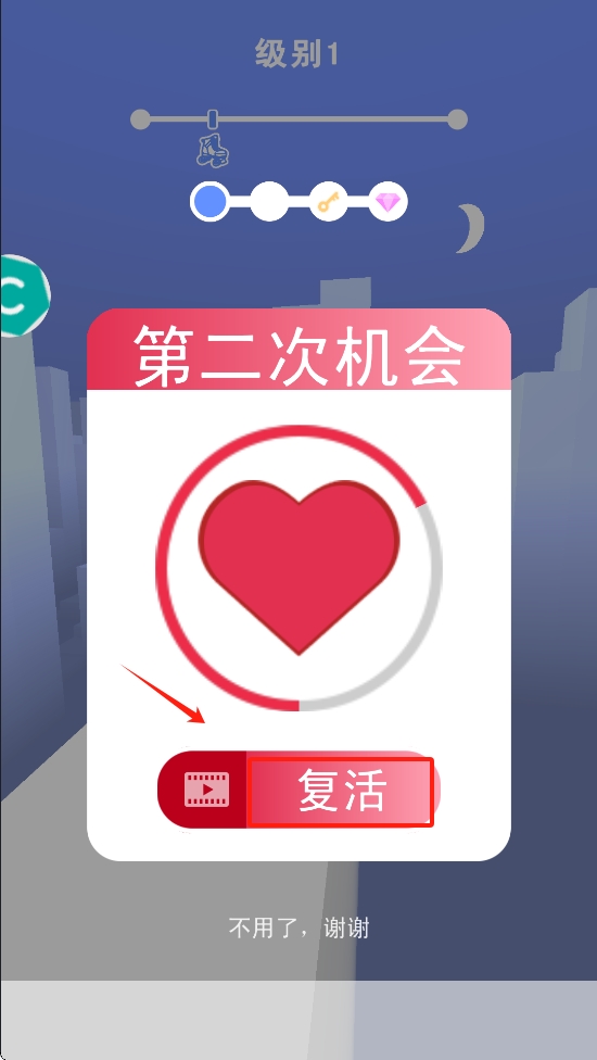 2、如果摔倒,点击“复活”按钮继续游戏,争取更好的成绩。