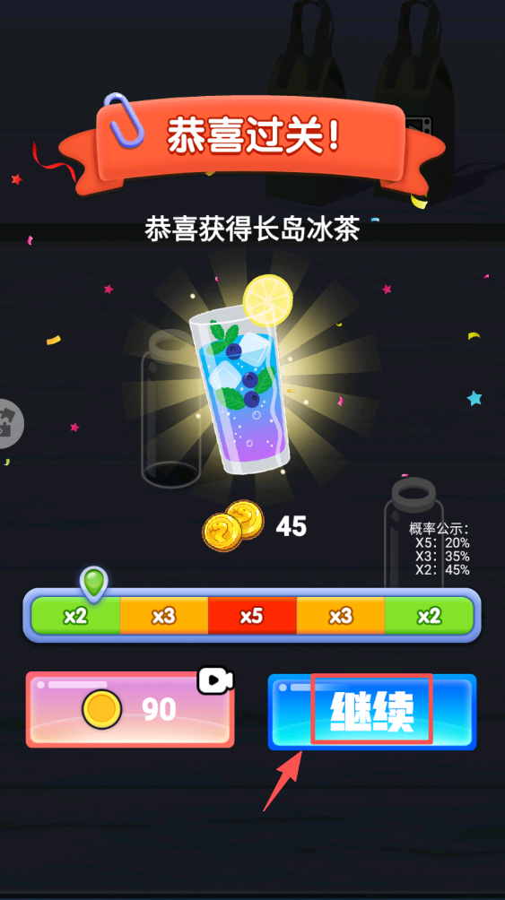 4、成功混合出目标颜色后,点击“继续”完成关卡并领取奖励。