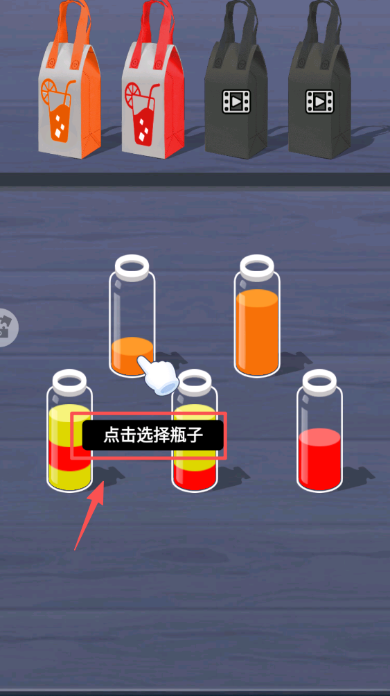 1、在游戏中,点击你想要操作的瓶子,开始混合色彩。