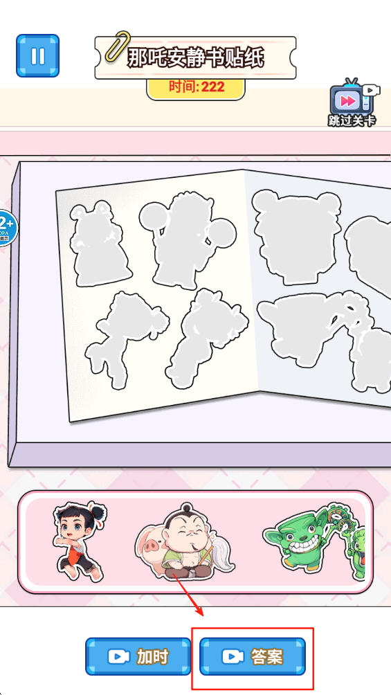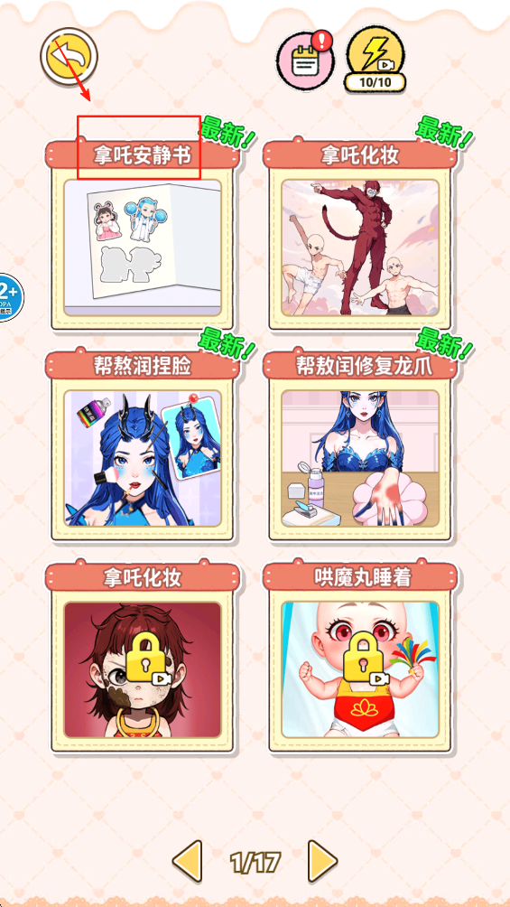 2、在关卡选择界面,点击“拿吒安静书”进入具体任务,准备开始贴纸挑战。