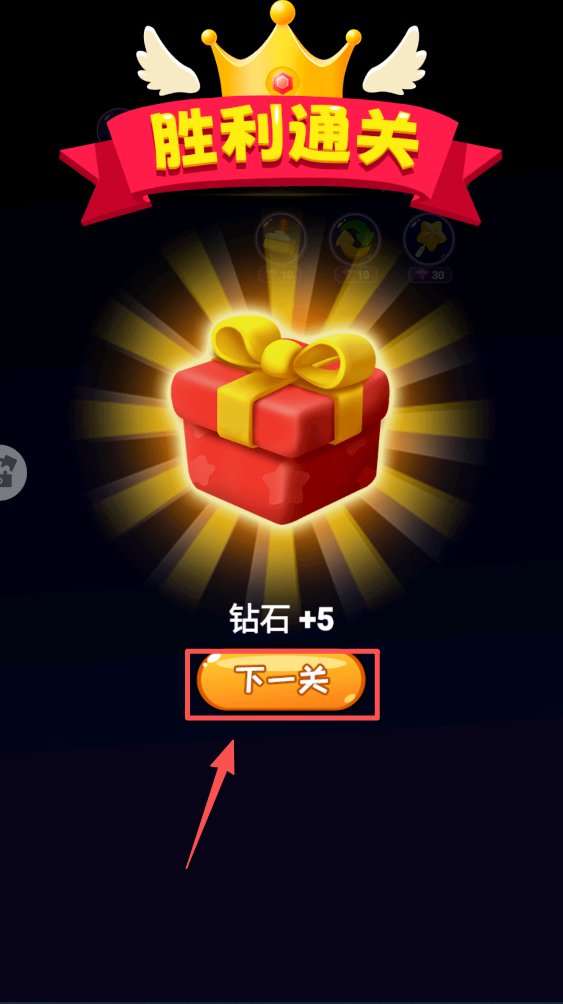 4、达到或超过目标分数后,点击“下一关”按钮,领取奖励并进入下一关。