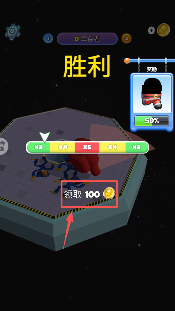 3、战斗胜利后,点击“领取100金币”按钮,获取你的战斗奖励。