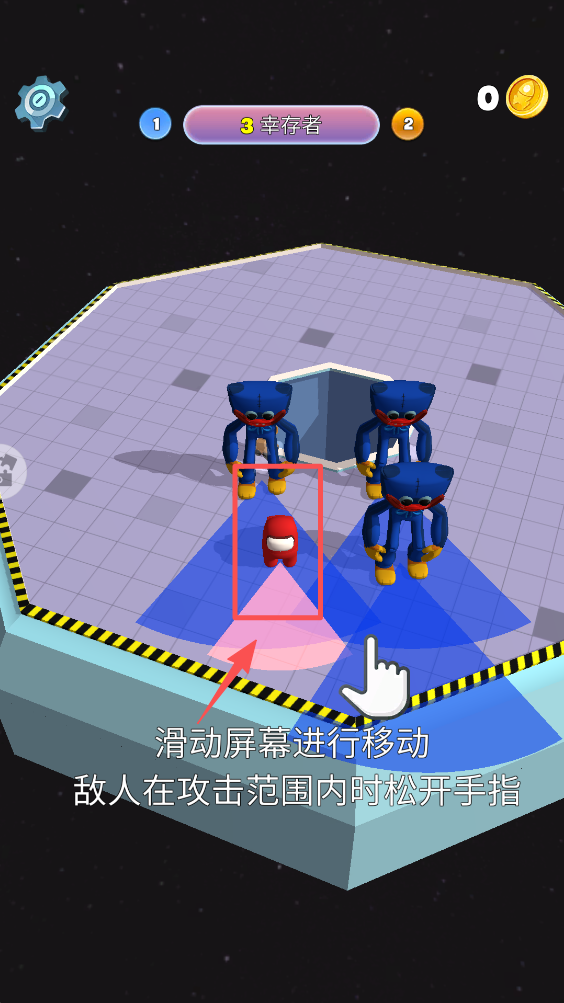 2、滑动屏幕进行移动,当敌人在攻击范围内时松开手指,进行攻击。