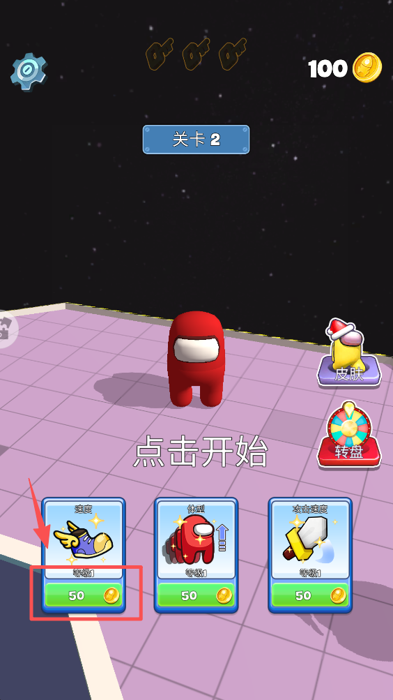 4、使用金币购买速度、能量或攻击速度升级,提升角色能力。