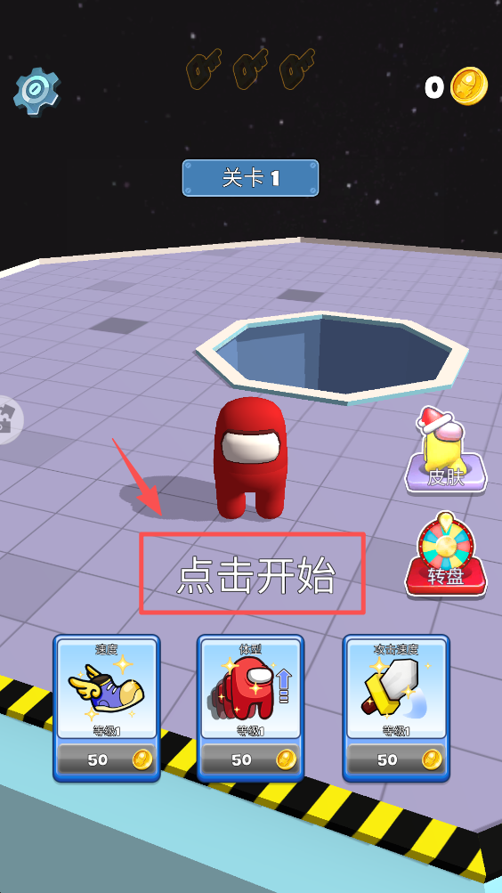 1、点击“点击开始”按钮,进入关卡1,准备开始你的冒险之旅。