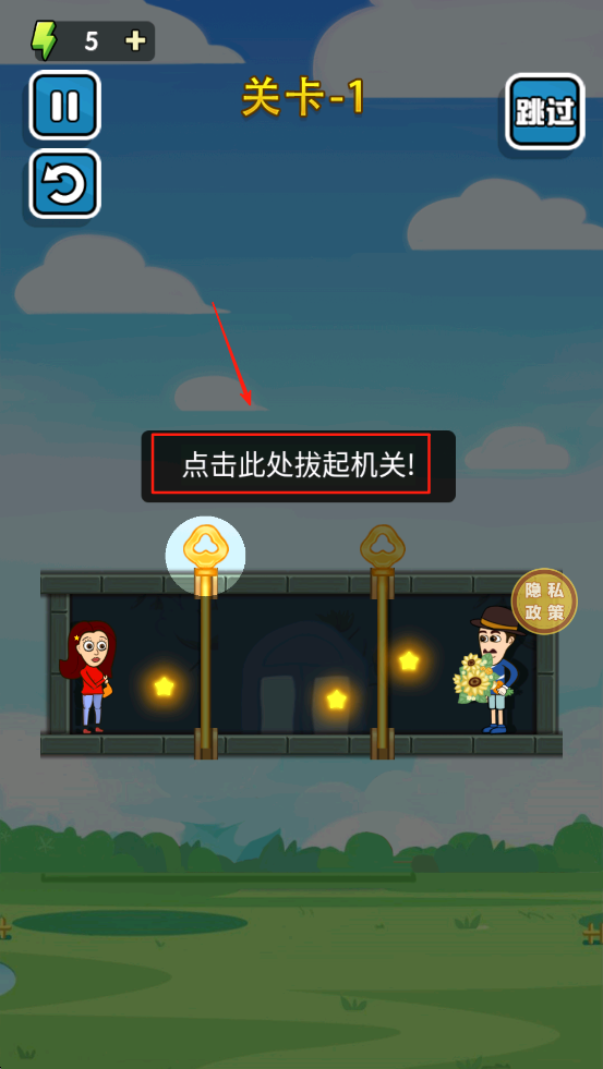 3、在关卡中,点击提示位置拔起机关,继续游戏进程。