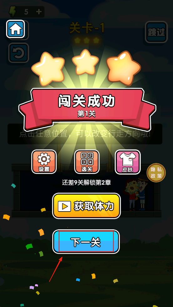 4、完成关卡后,点击“下一关”继续挑战,享受更多乐趣。
