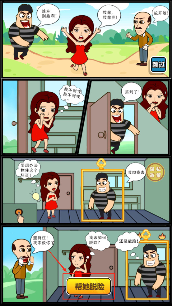 2、在游戏剧情中,点击“帮她脱险”按钮帮助角色。