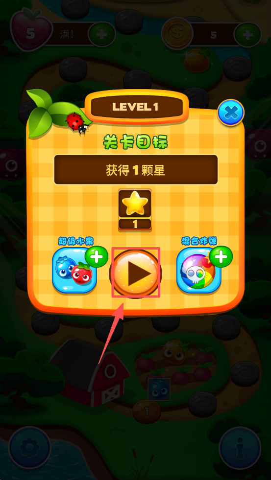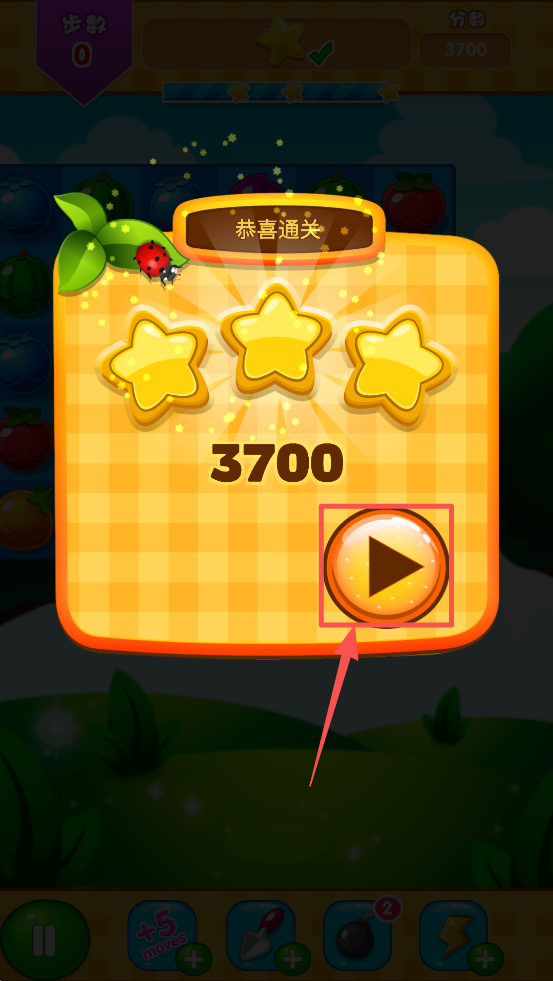 4、完成关卡目标后,点击播放按钮领取你的奖励和星级评价。