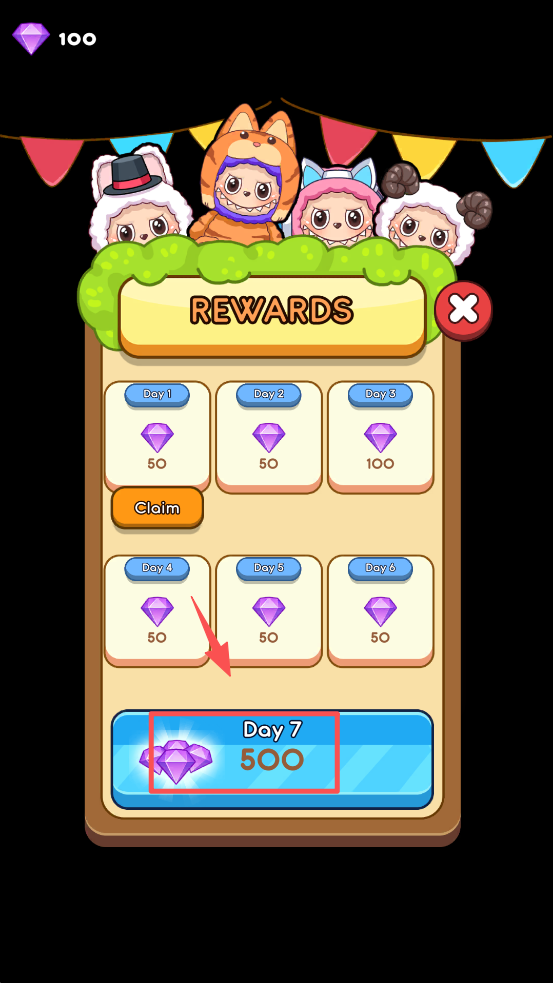 2、查看奖励页面,点击“Day 7”领取连续登录奖励,增加游戏动力。