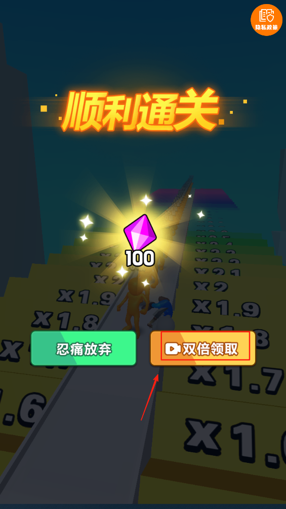 4、游戏胜利后,选择“双倍领取”来获取更多钻石奖励,继续提升角色能力。