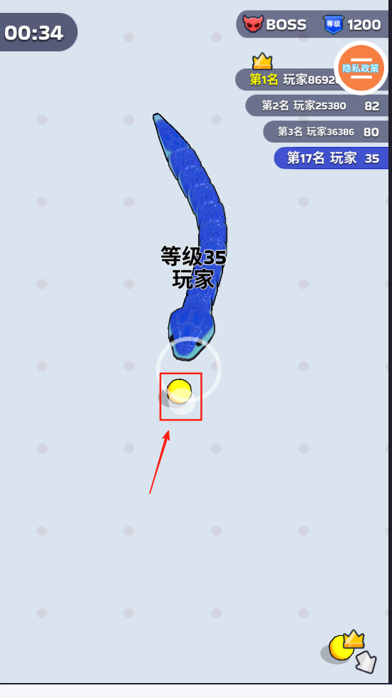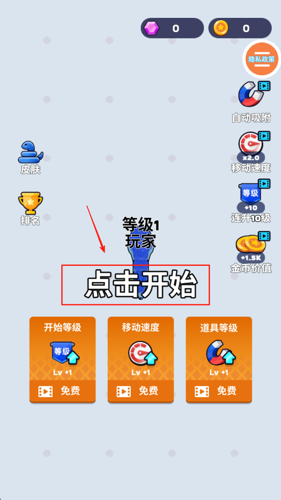 2、控制你的贪吃蛇吃掉地图上的金币,提升等级,等级越高,移动速度越快。