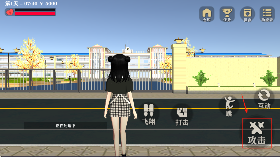 2、通过点击“攻击”按钮,与游戏中的NPC进行互动。