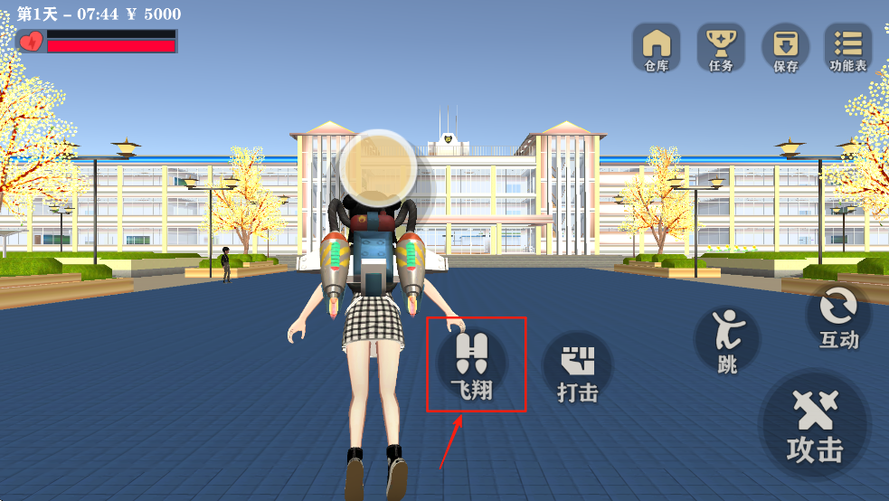 3、使用“飞翔”功能,快速移动到校园的不同地点。