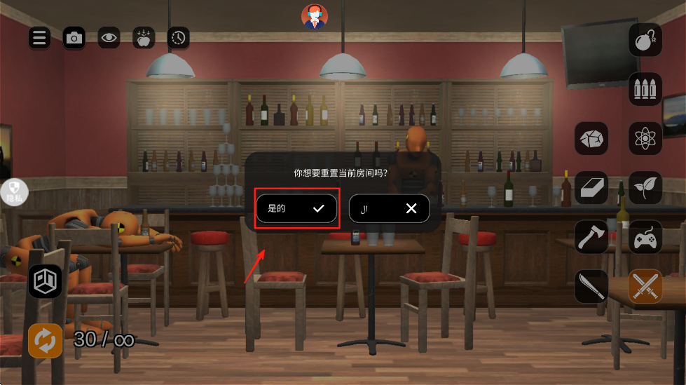 4、完成教程后,点击“是的”确认重置房间,开始自由探索和游戏。