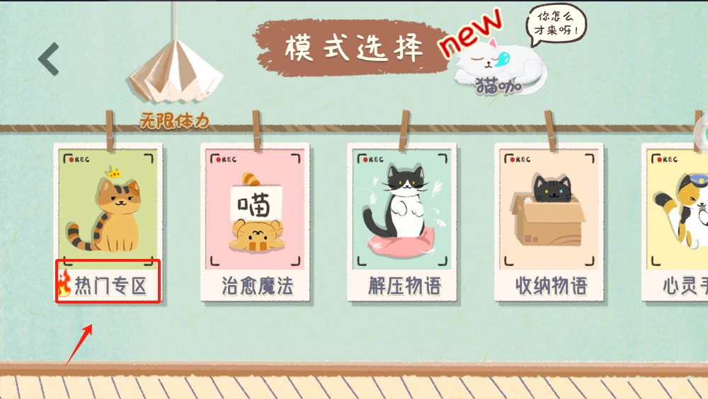 2、在模式选择界面,点击“热门专区”模式,选择你喜欢的游戏模式。