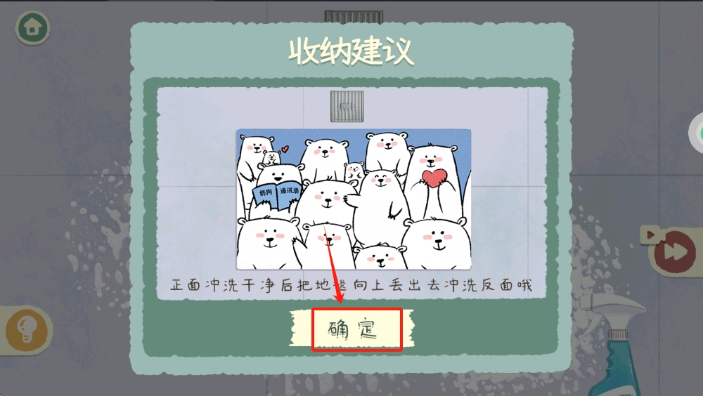 4、在游戏中,点击“确定”按钮,确认收纳建议,帮助你更好地管理游戏物品。
