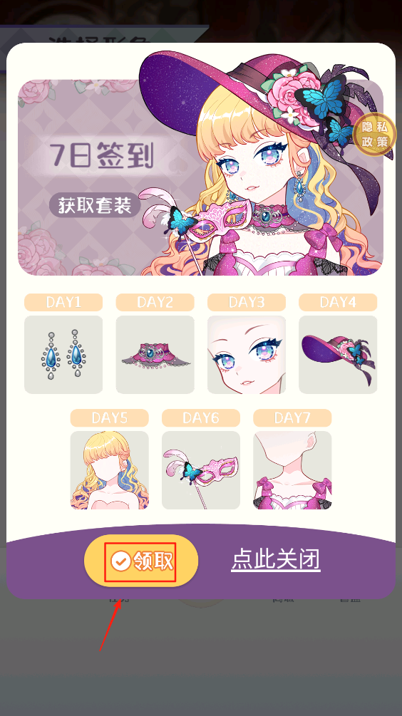 2、在游戏内,点击“领取”按钮,获取每日签到奖励,积累装扮资源。