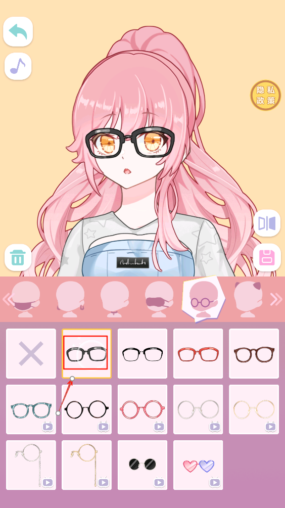 4、进入装扮界面后,选择不同的眼镜样式,为你的角色增添个性魅力。